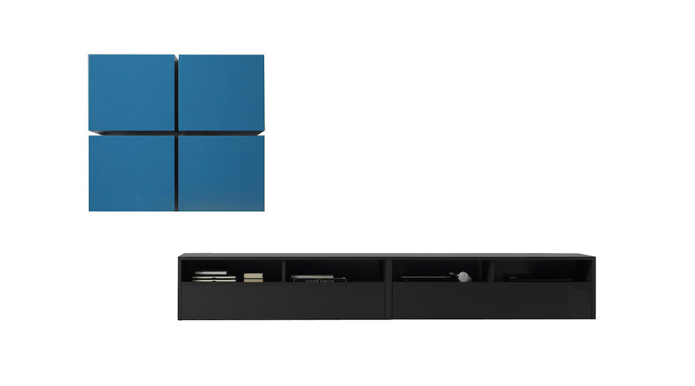 Parete Attrezzata Mobili Salotto Con 4 Mobili Sospesi 2 Mobili Tv 335x41x176cm TFT Boost Antracite e Blu