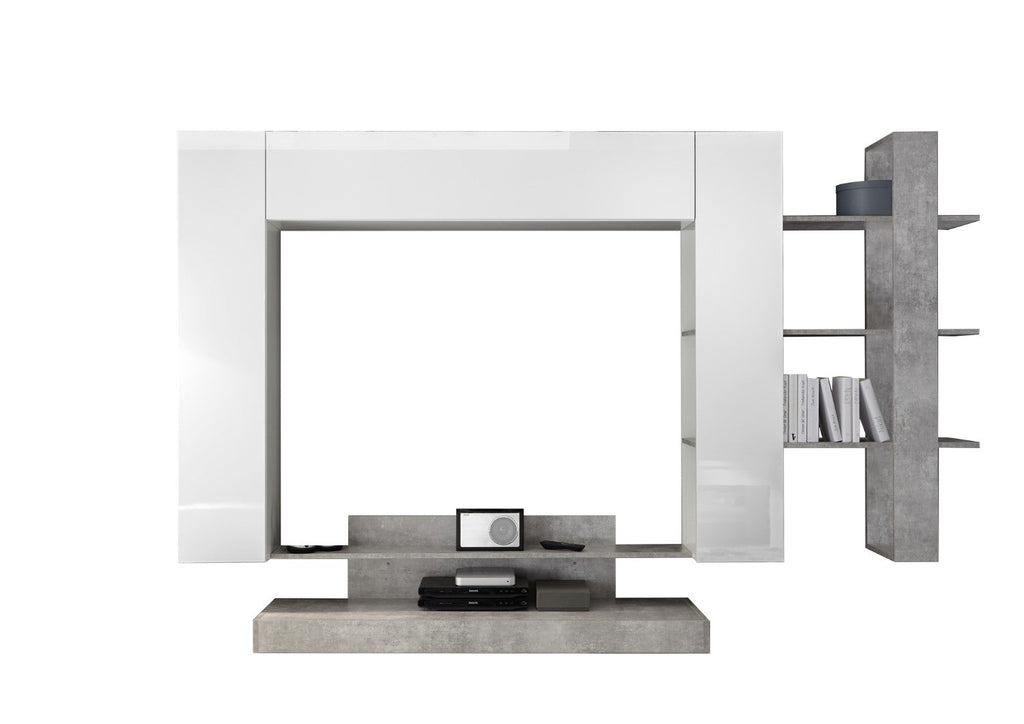 Parete Attrezzata Mobili Soggiorno 2 Pensili 1 Mobile TV 1 Libreria in Melaminico 259x40x175cm TFT Nico Bianco Cemento
