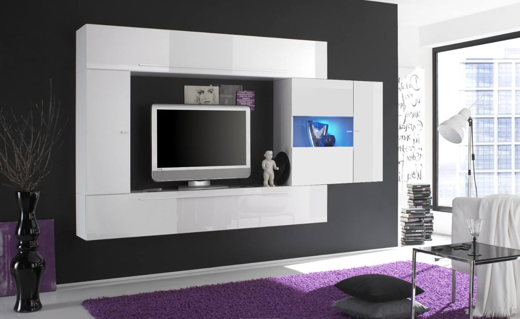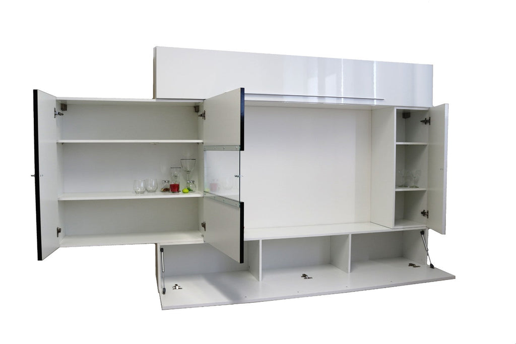 Parete Attrezzata Mobili Soggiorno 3 Pensili 1 Vetrina in Melaminico Laccato 272x36x200cm TFT Primo Bianco