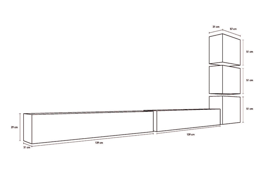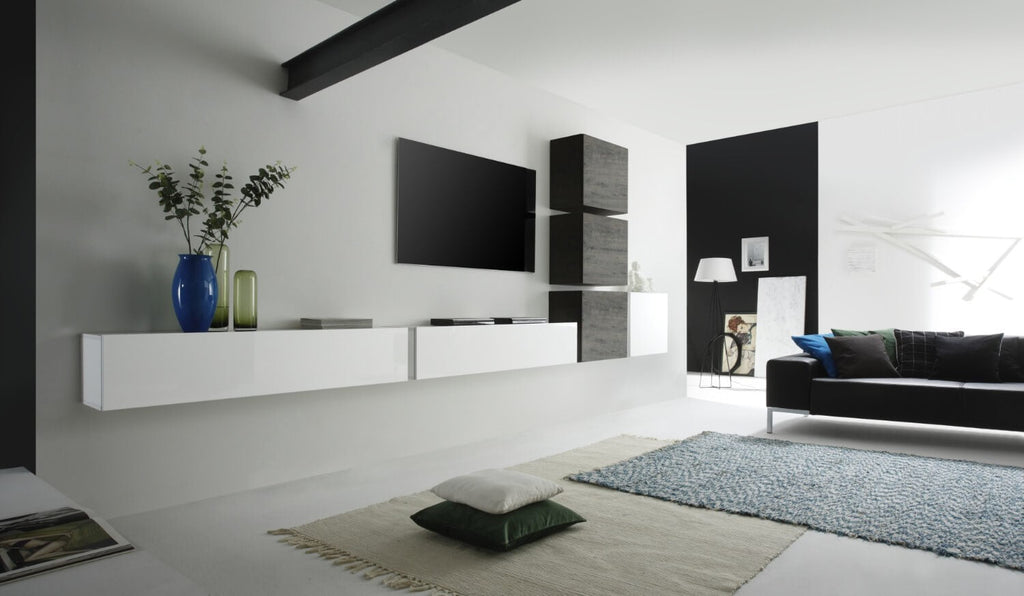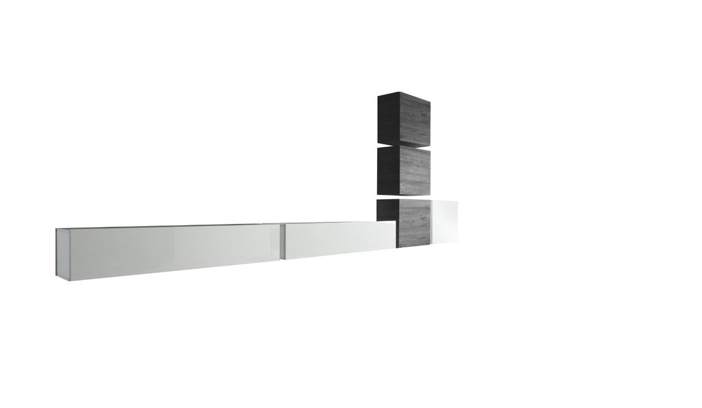 Parete Attrezzata Mobili Soggiorno 6 Pensili in Melaminico Laccato 401x31x189cm TFT Cube Bianco Rovere