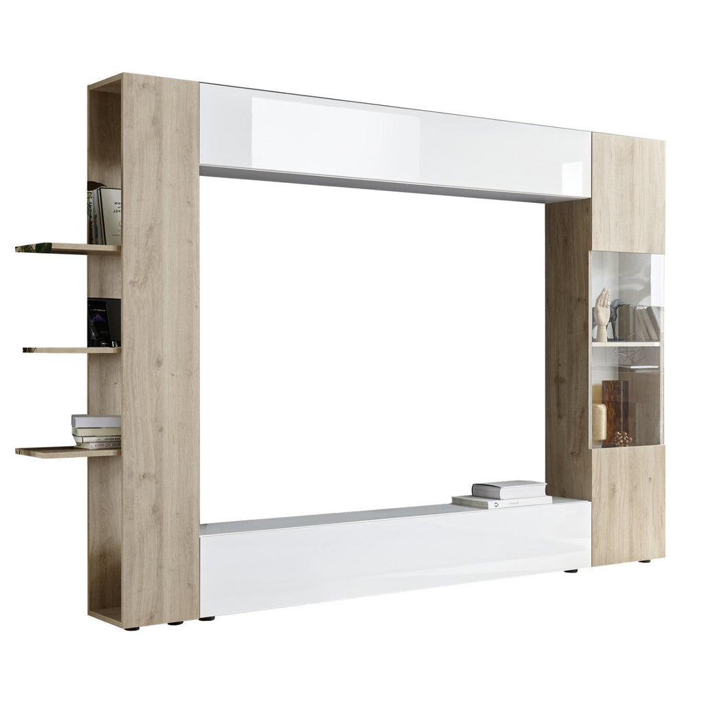 Parete Attrezzata Mobili Soggiorno Mobile TV Libreria Pensile e Mobile a Colonna TFT Akira 2 Bianco e Rovere