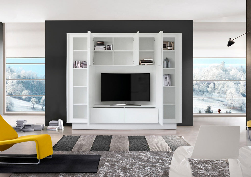 Parete Attrezzata Mobili Soggiorno Mobile TV Pensile 2 Mobili a Colonna TFT Frame Bianco Opaco