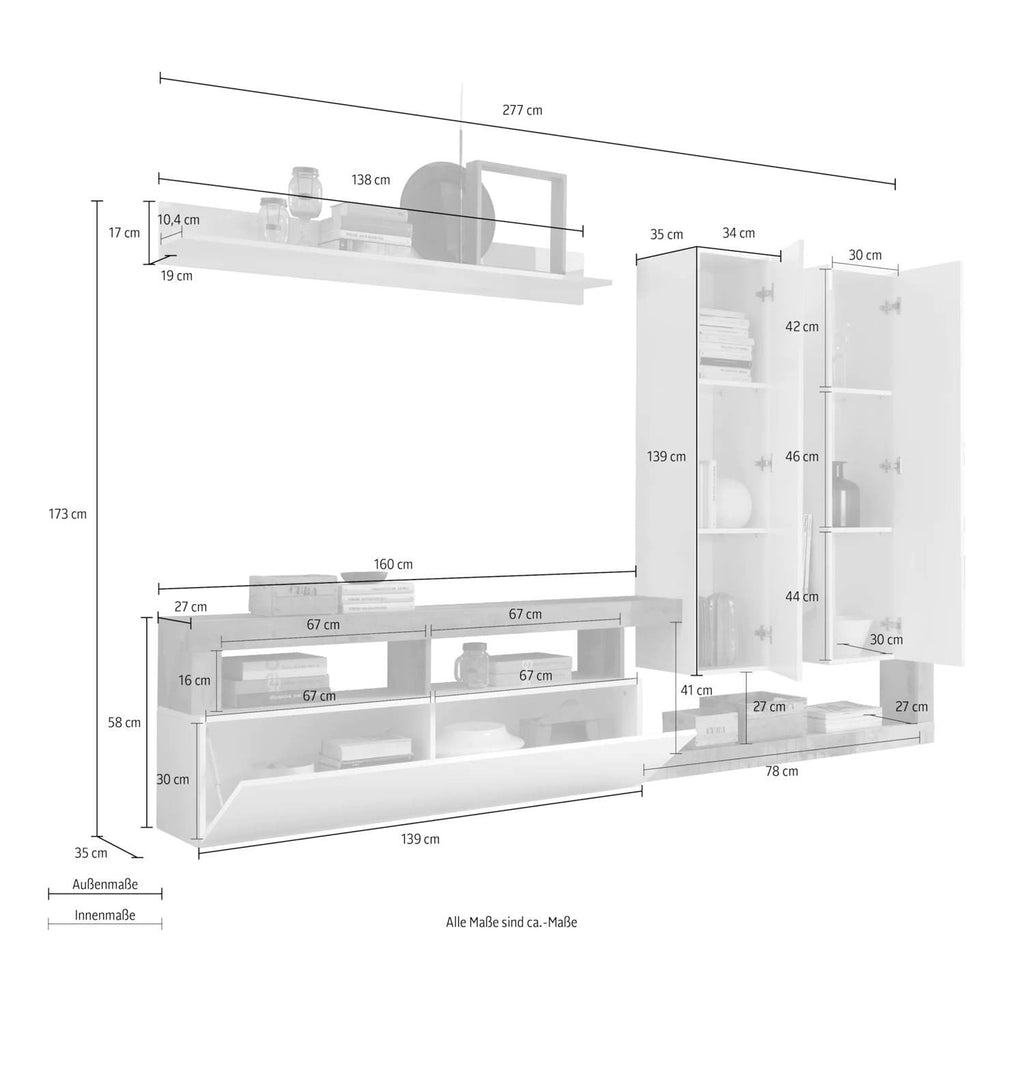 - Spazio sul pavimento e spazio per appendere TV L / H circa 160 x 90 cm