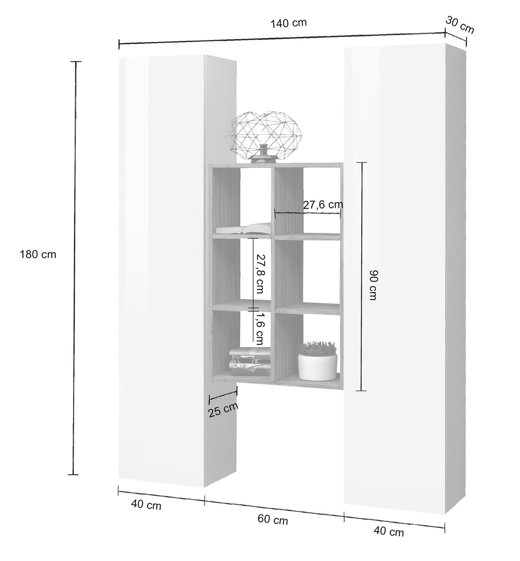 - Dimensioni: 140 x 30 x 180 cm (LxPxA)