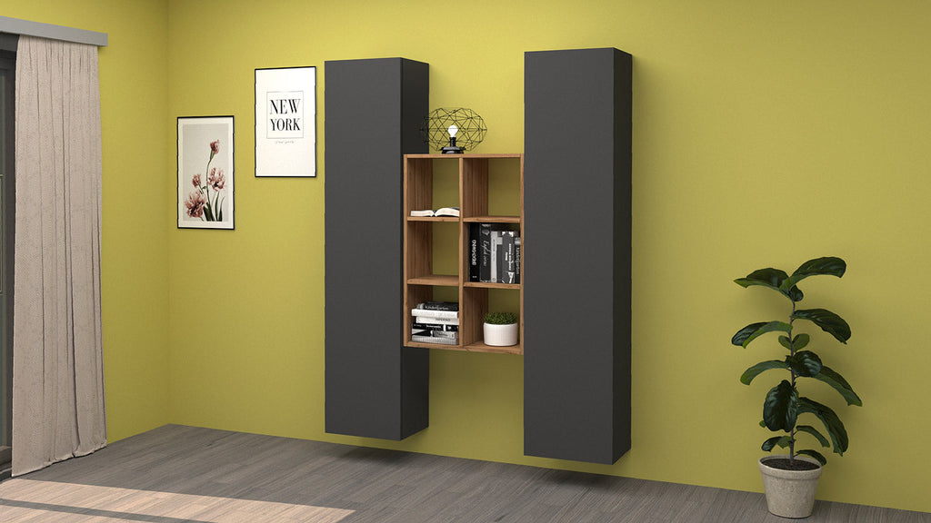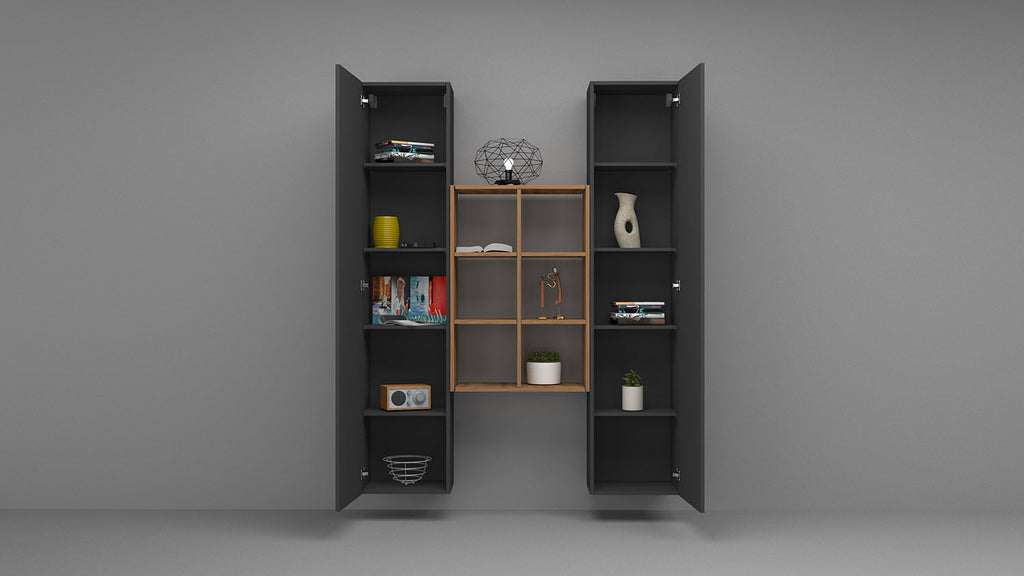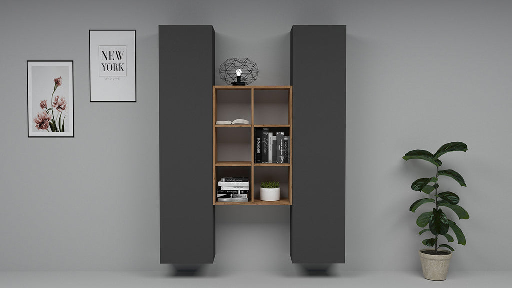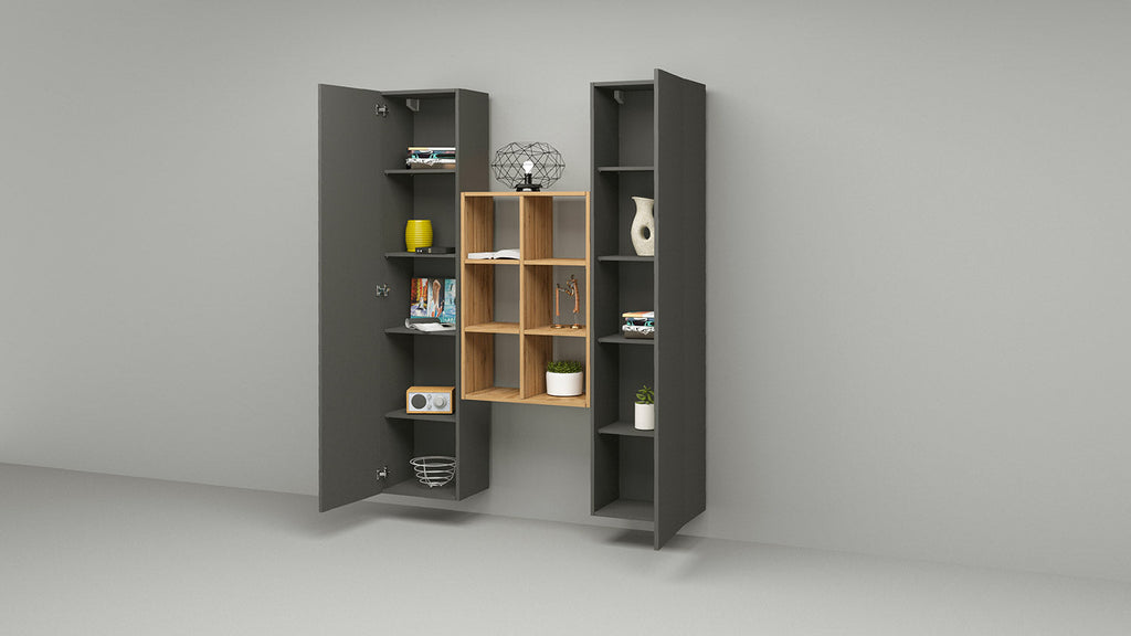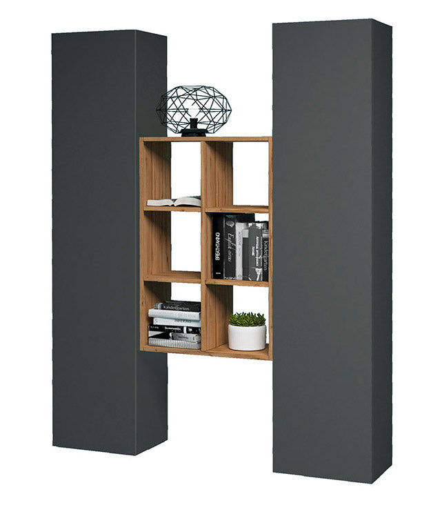 Parete Attrezzata Soggiorno 140x30x180 cm Maruska n°22 Grigio Antracite Opaco