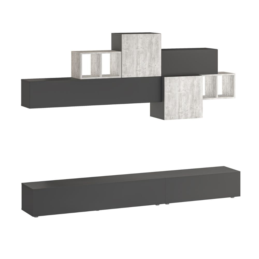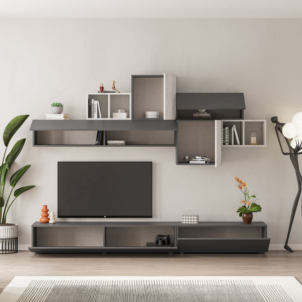Parete Attrezzata Soggiorno 260 cm in MDF Tromen Antracite e Bianco