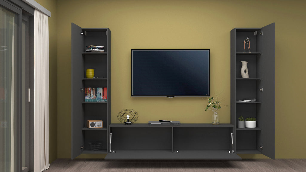 Parete Attrezzata Soggiorno 260x30x180 cm Maruska n°11 Grigio Antracite Opaco