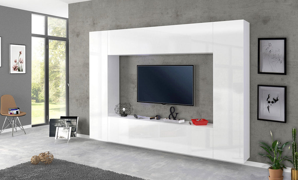Parete Attrezzata Soggiorno 260x30x180 cm Maruska n°2 Bianco Lucido