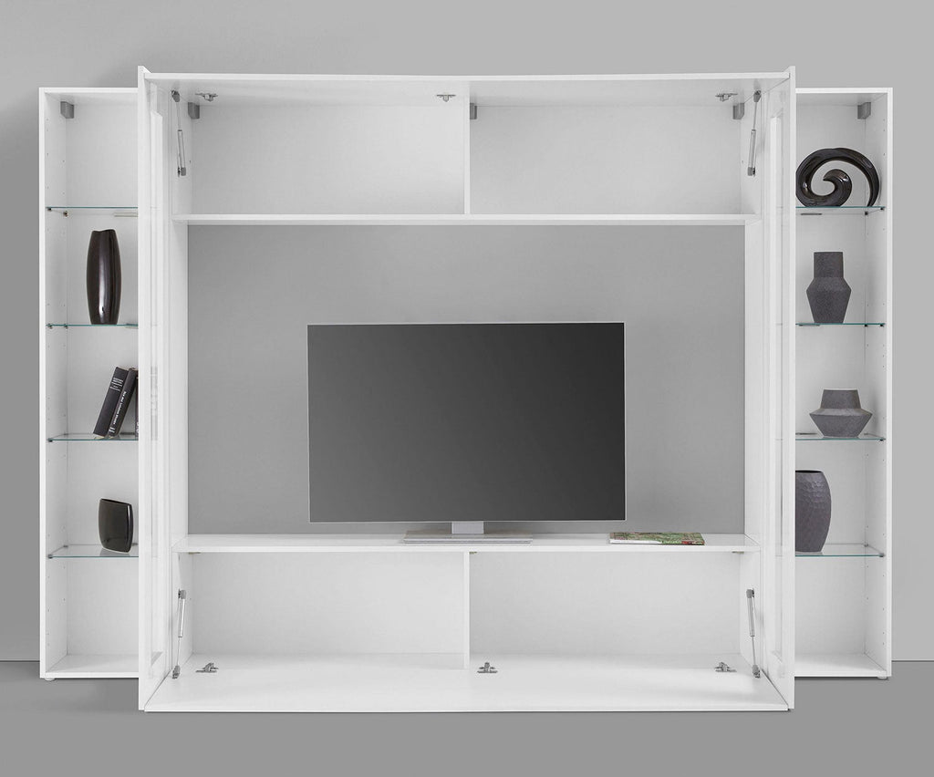 Parete Attrezzata Soggiorno 260x30x180 cm Maruska n°4 Bianco Lucido