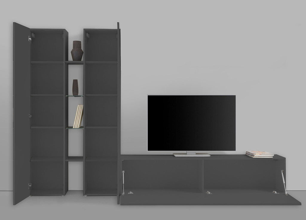 Parete Attrezzata Soggiorno 280x30x180 cm Maruska n°10 Grigio Antracite Opaco