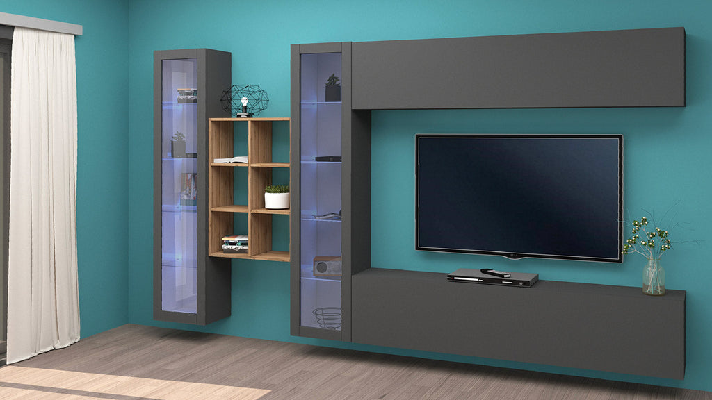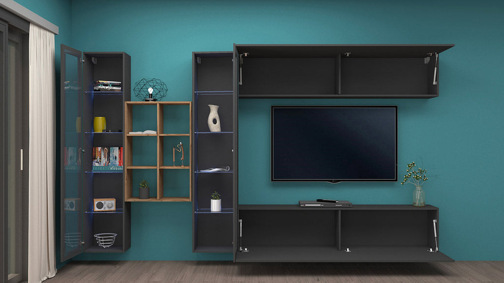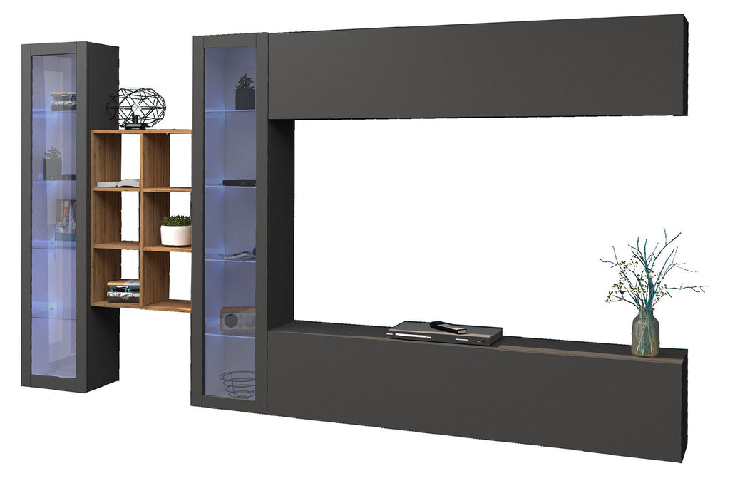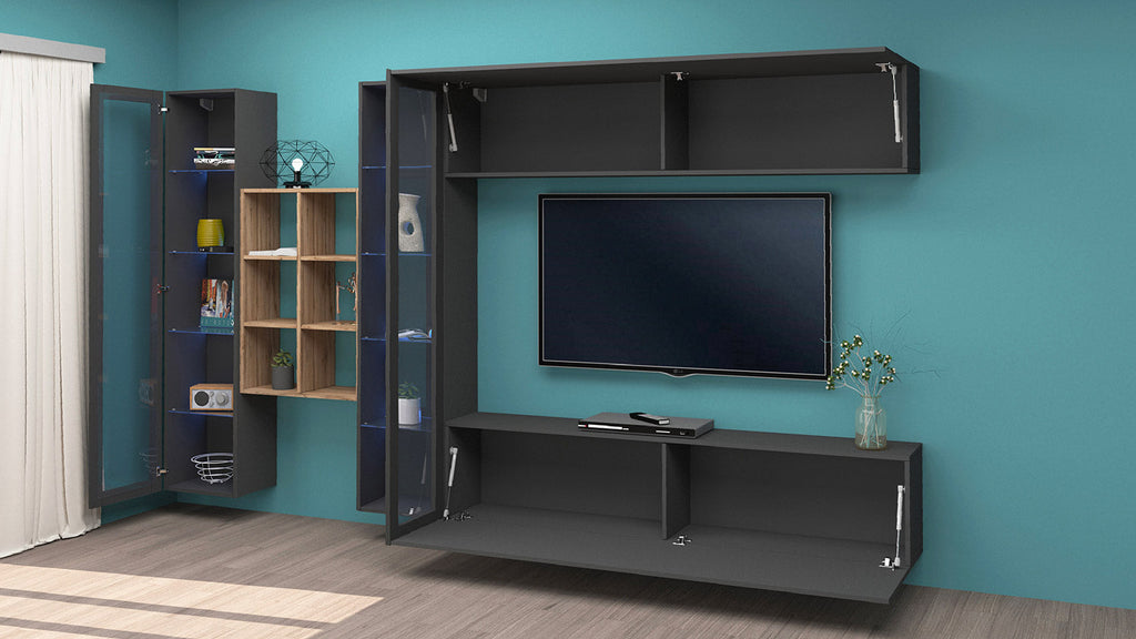 Parete Attrezzata Soggiorno 320x30x180 cm Maruska n°17 Grigio Antracite Opaco