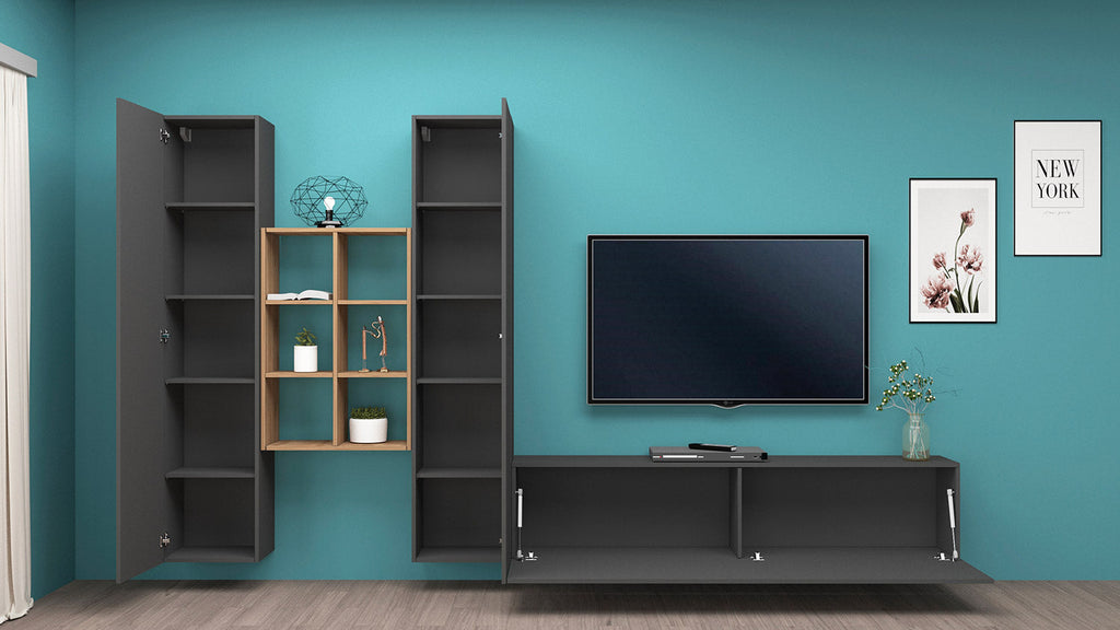 Parete Attrezzata Soggiorno 320x30x180 cm Maruska n°21 Grigio Antracite Opaco