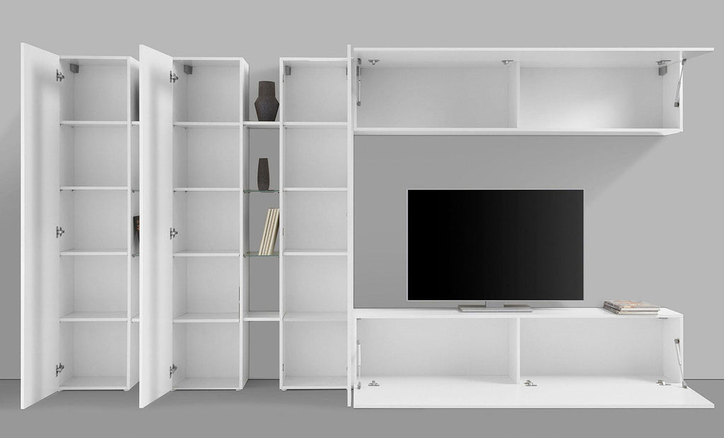 Parete Attrezzata Soggiorno 340x30x180 cm Maruska n°5 Bianco Lucido