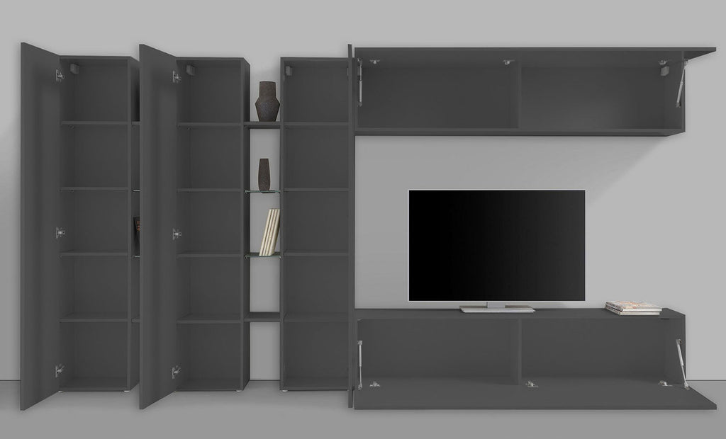 Parete Attrezzata Soggiorno 340x30x180 cm Maruska n°5 Grigio Antracite Opaco
