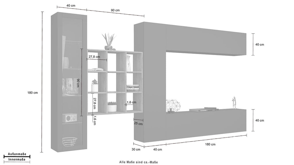 Giordano Shop Mobili Soggiorno Parete Attrezzata Soggiorno 350x30x18...