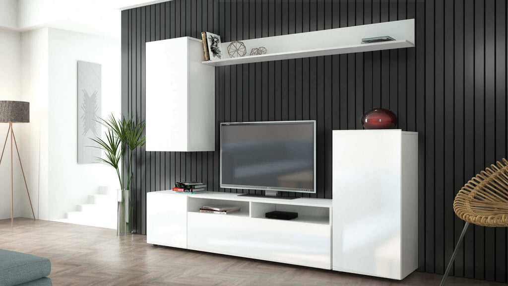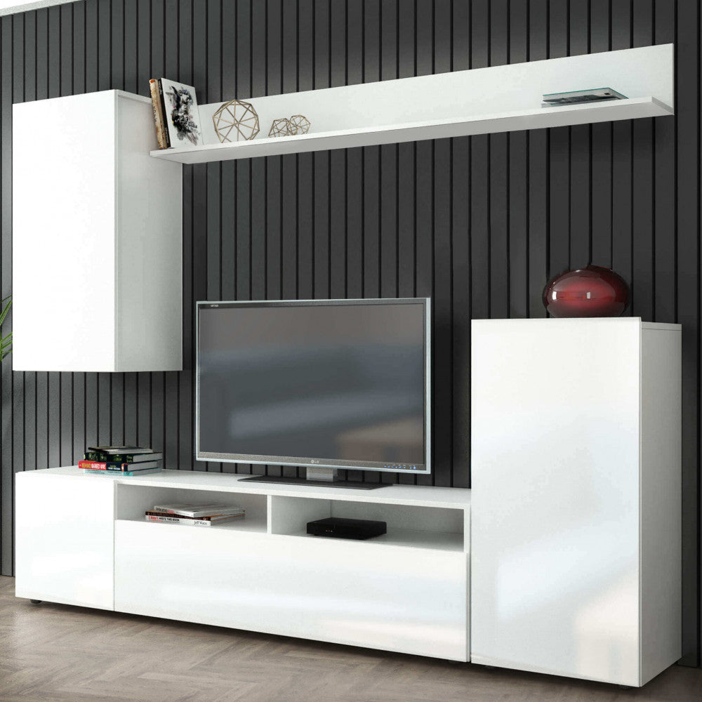 Parete Attrezzata Soggiorno Bridge 207x34x170 h cm in Truciolare bilaminato Bianco