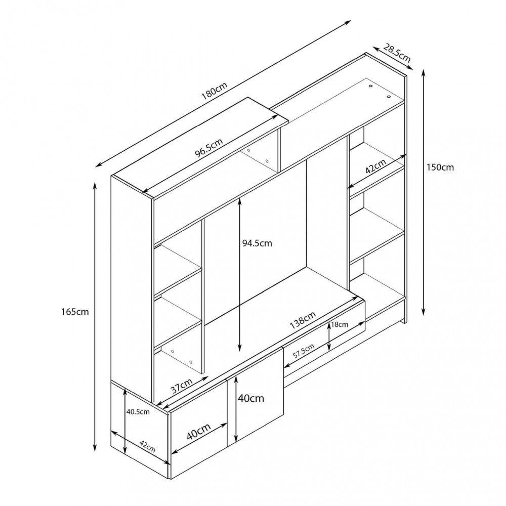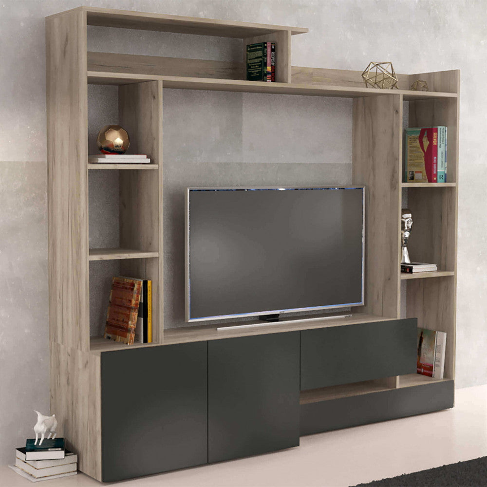 Parete Attrezzata Soggiorno Entry 180x28/40x165 h cm in Truciolare bilaminato Nero