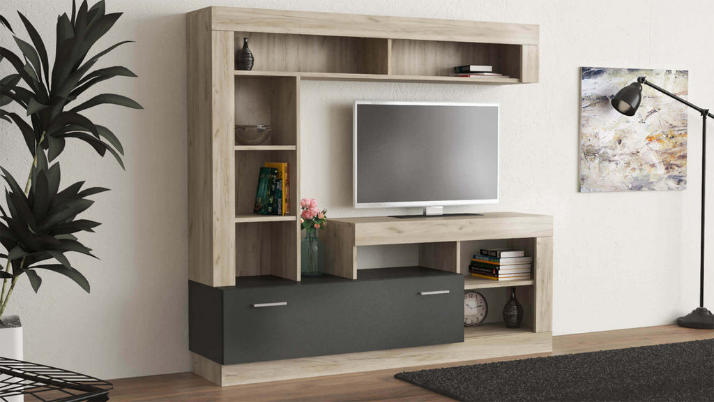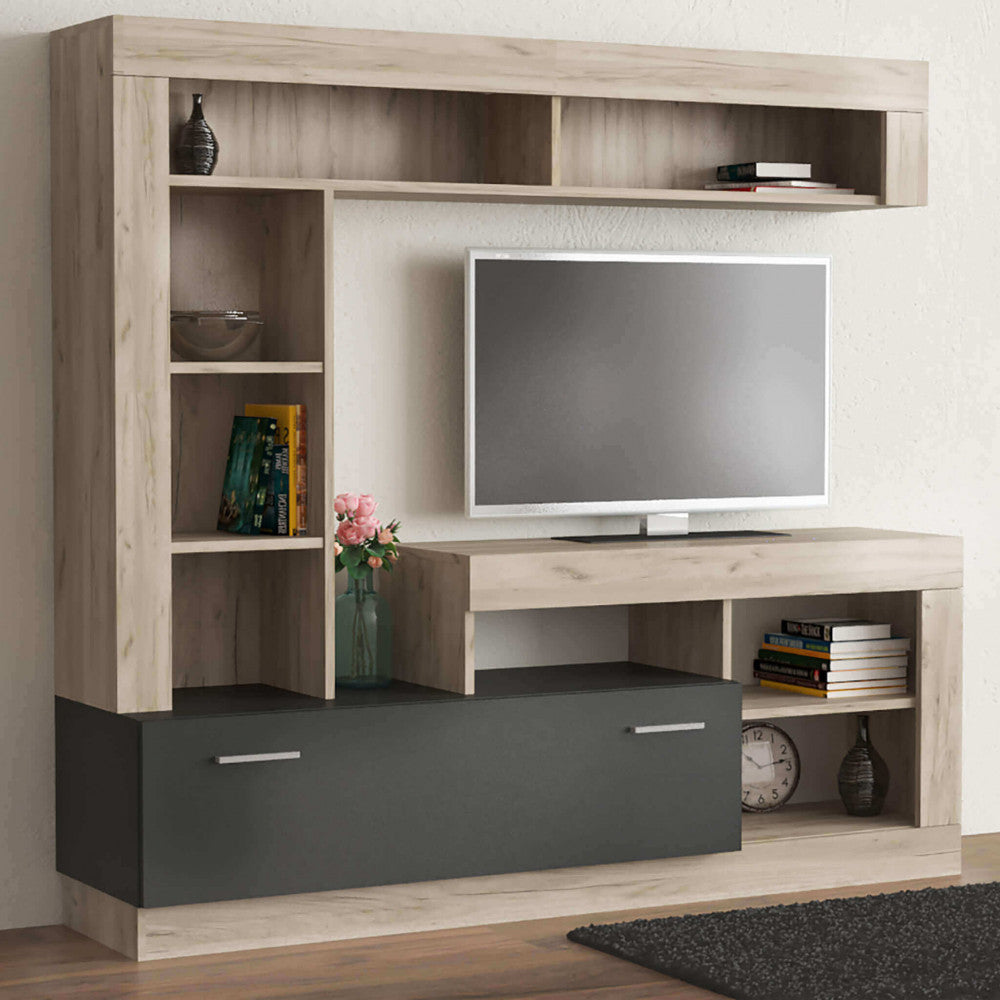 Parete Attrezzata Soggiorno Leonard 170x42x170 h cm in Truciolare bilaminato Nero