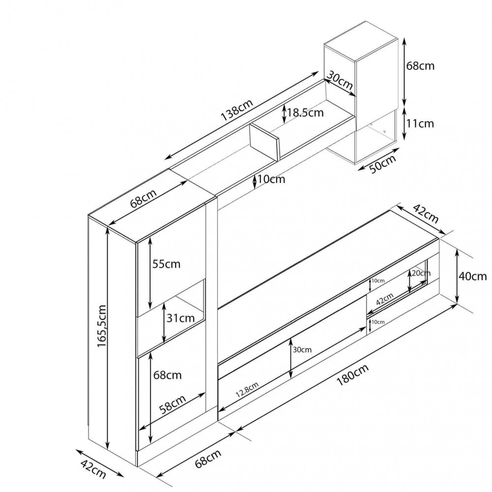 Parete Attrezzata Soggiorno Roomy 255x40x200 h cm in Truciolare bilaminato Bianco