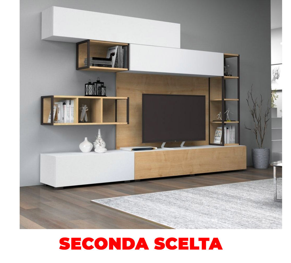 Parete attrezzata Tronador 260 cm bianco rovere sorrento Seconda Scelta