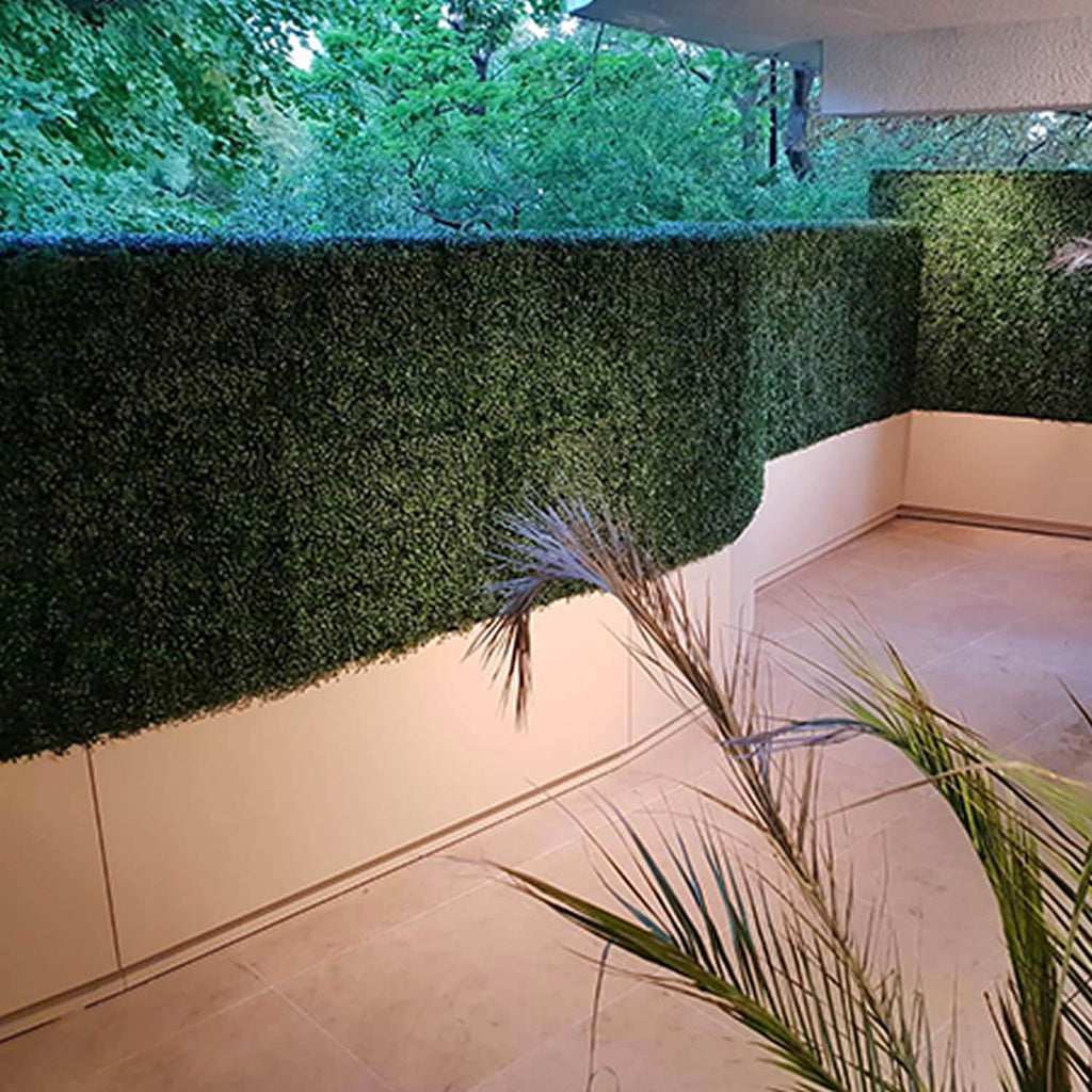 Il pannello Verde Artificiale è ottimo per essere applicato a colonne, muri o soffitti, così da dare l'impressione di essere quasi all'aperto. La composizione è semplice così da potersi adattare a qualsiasi ambiente, intimo e familiare oppure moderno e chic. È provvisto di clip di aggancio rapido e invisibili così da rendere più semplice il montaggio, ma anche per poter creare varie combinazioni in modo da rendere il più unico possibile il tuo locale. I materiali da cui è composto lo rendono un pannello perfetto per uso interno ma anche per uso esterno, in grado di resistere alle intemperie e ai raggi UV.
