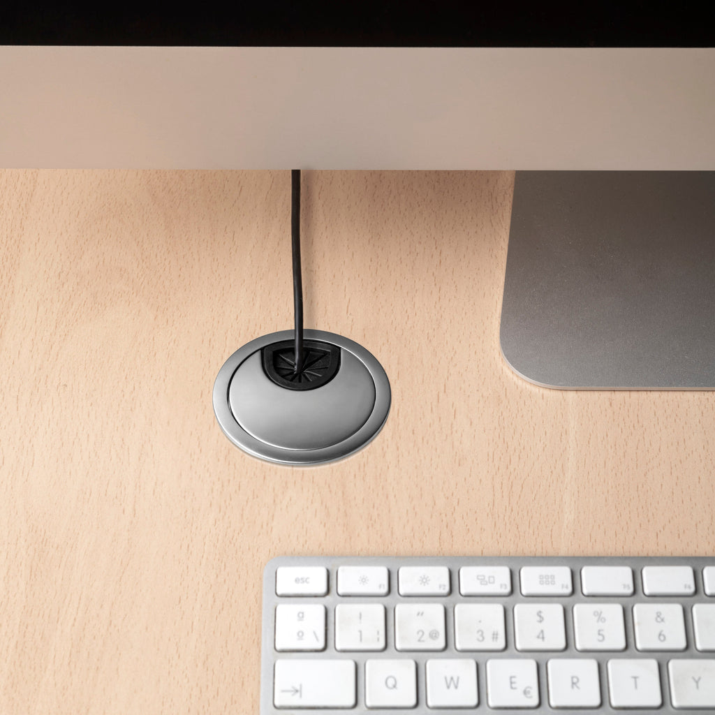 Coperchio passacavi da incasso per qualsiasi scrivania o tavolo, in zama. Nasconde le connessioni in modo facile accedendo ad esso semplicemente estraendo il coperchio con semplice rotazione.