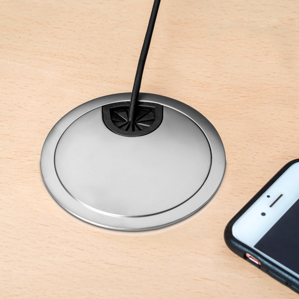 Coperchio passacavi da incasso per qualsiasi scrivania o tavolo, in zama. Nasconde le connessioni in modo facile accedendo ad esso semplicemente estraendo il coperchio con semplice rotazione.