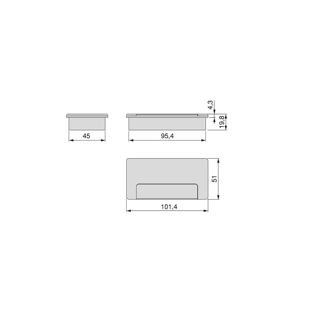- Passa cavi rettangolare per tavolo da ufficio o arredo casa.