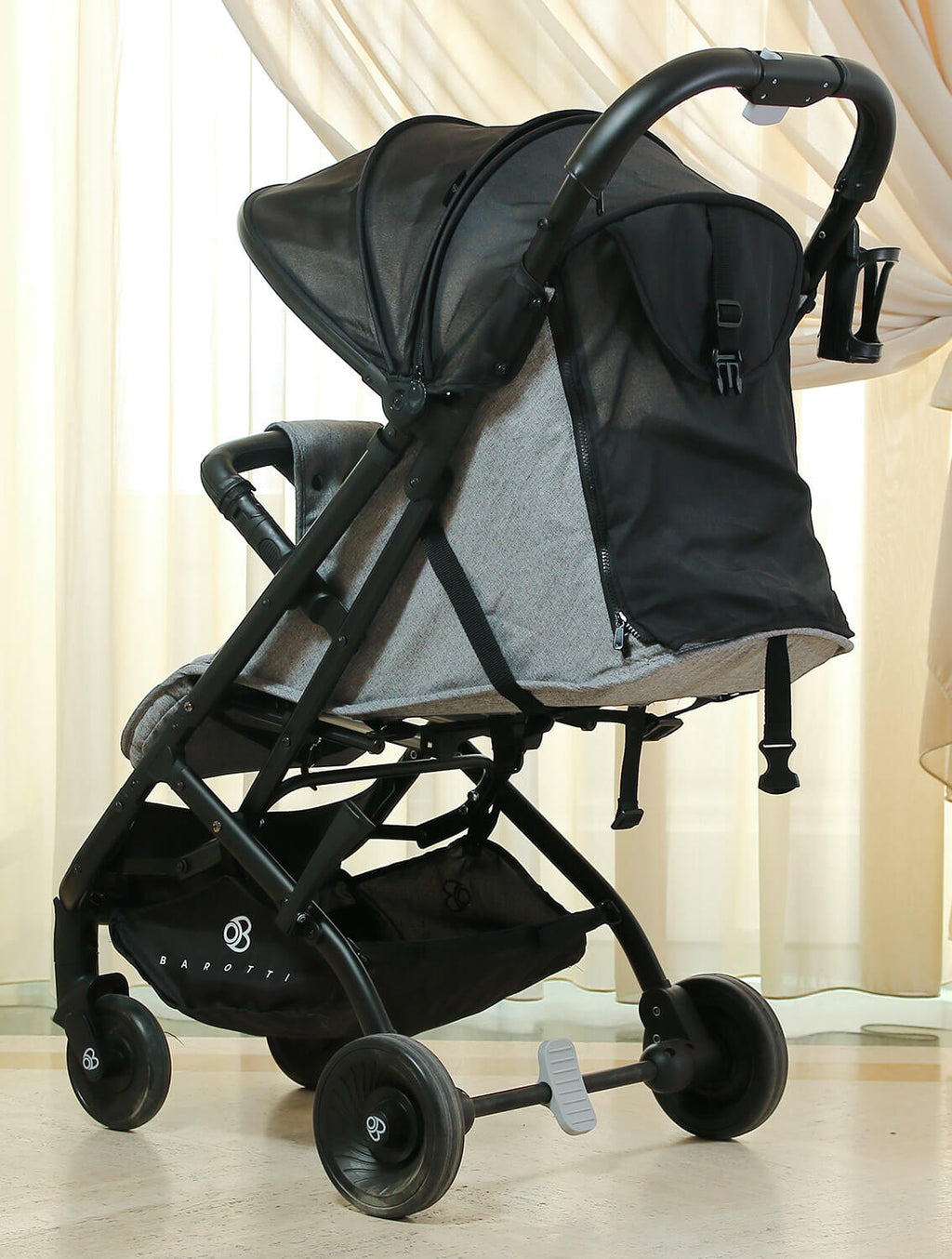 Primo è il nuovo passeggino ultraleggero di Barotti. Chiuso si trasforma in un trolley completo di maniglione e sacca per il trasporto, compatibile con le dimensioni del bagaglio a mano in aereo. Primo è leggero e compatto con telaio in alluminio, ruote extra fluide anteriori piroettanti con sistema di blocco/sblocco e posteriori con freno sincronizzato, morbide sospensioni anteriori e posteriori. Seduta extra large comoda e confortevole.