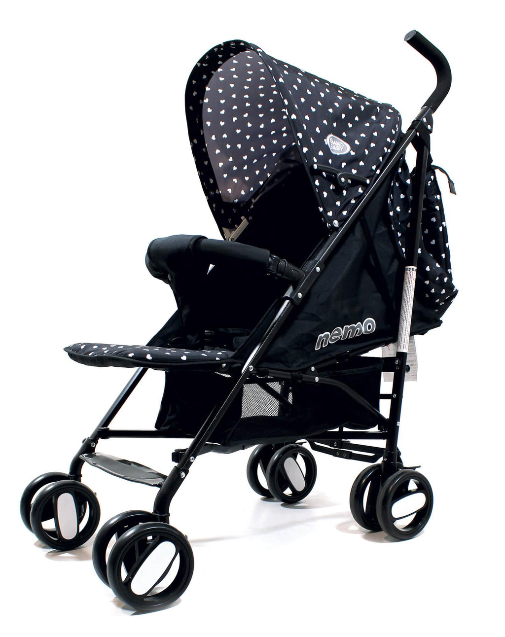 Passeggino Leggero per Bambini Pieghevole con Borsa Nemo Nero con Cuori