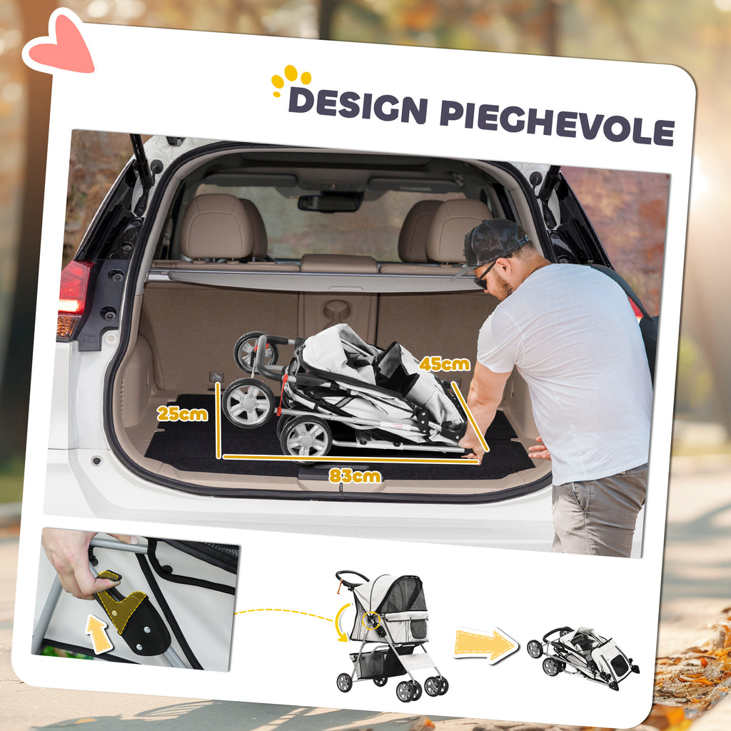 Passeggino per Cani Taglia Piccola Pieghevole con Copertura Antipioggia e Freni Grigio