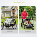 Passeggino Rimorchio da Bicicletta per 2 Bambini in Acciaio e Tessuto Oxford Giallo e Nero