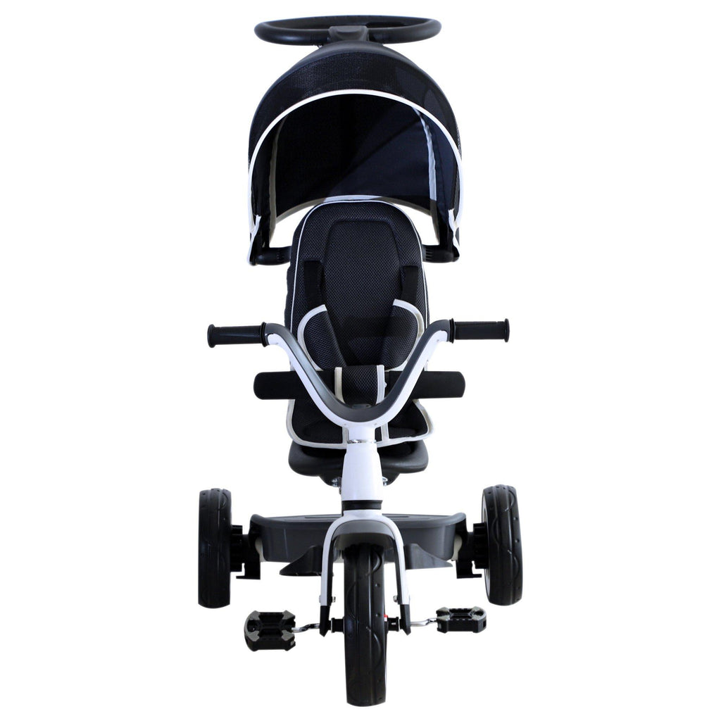 Passeggino Triciclo per Bambini con Maniglione Tettuccio e Cestino Grigio Scuro