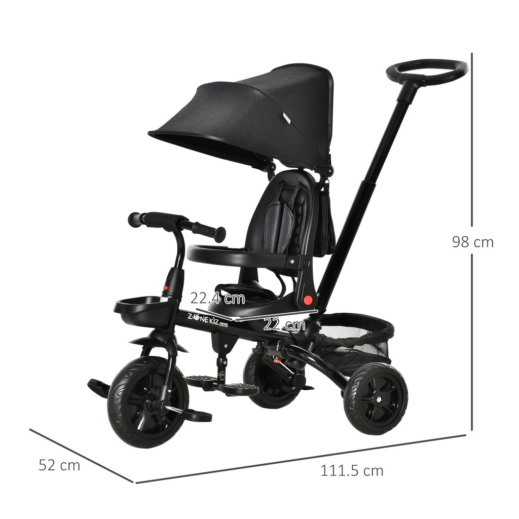Passeggino Triciclo per Bambini Pieghevole con Seggiolino Reversibile Nero