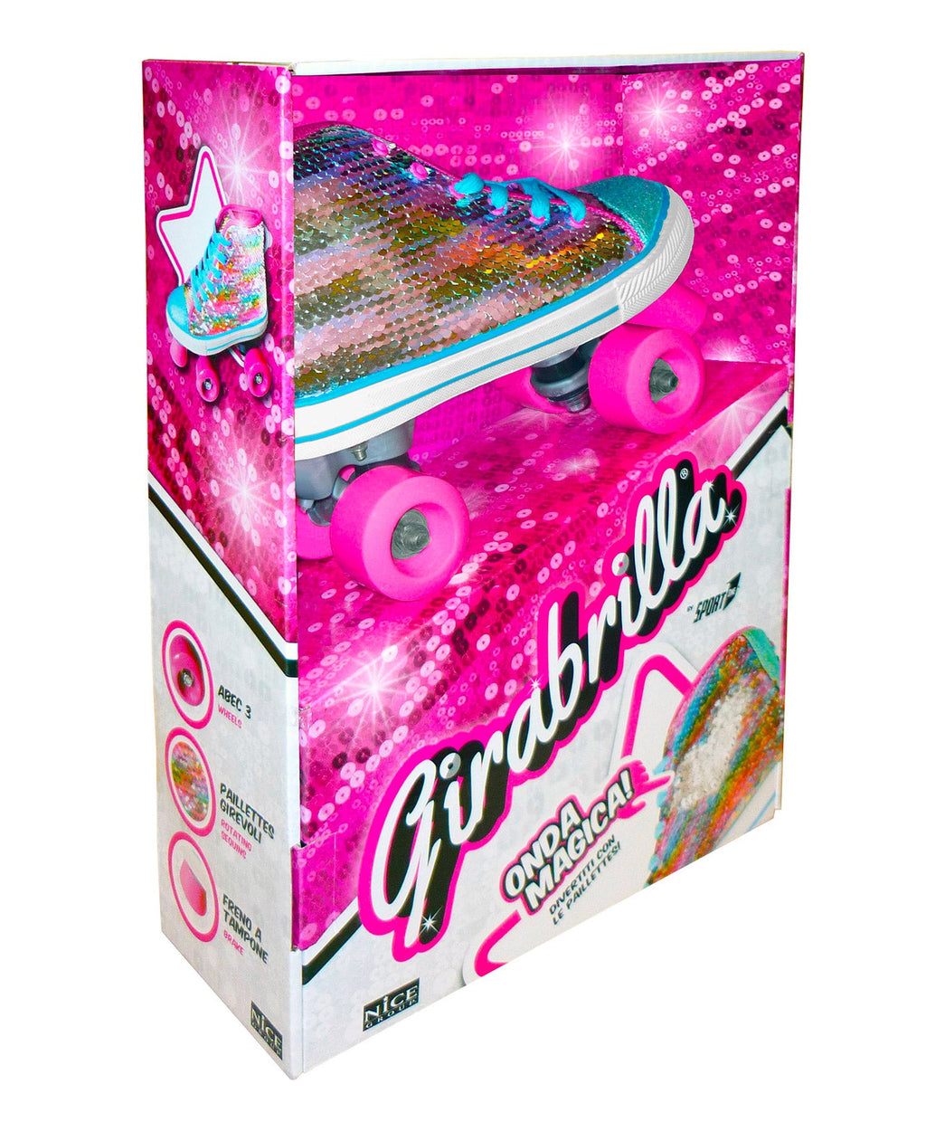 Questi pattini QUAD sono dotati di un gruppo ruote classico, con due ruote anteriori e due ruote posteriori, che permettono una maggiore stabilità durante la guida. La calzata dei pattini ricorda quella di una sneaker e presenta paillettes iridescenti girevoli, che conferiscono un tocco di stile unico. Dotati di freno a tampone, le ruote hanno una dimensione di 50x30mm e i cuscinetti di precisione assicurano una scorrevolezza ottimale. Questi pattini possono supportare fino a un peso massimo di 60 kg.