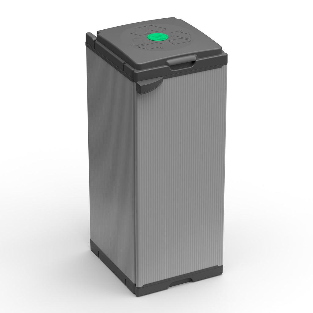 - Coperchio con ferma sacco, base, montanti e maniglia in resina di PP di seconda vita.