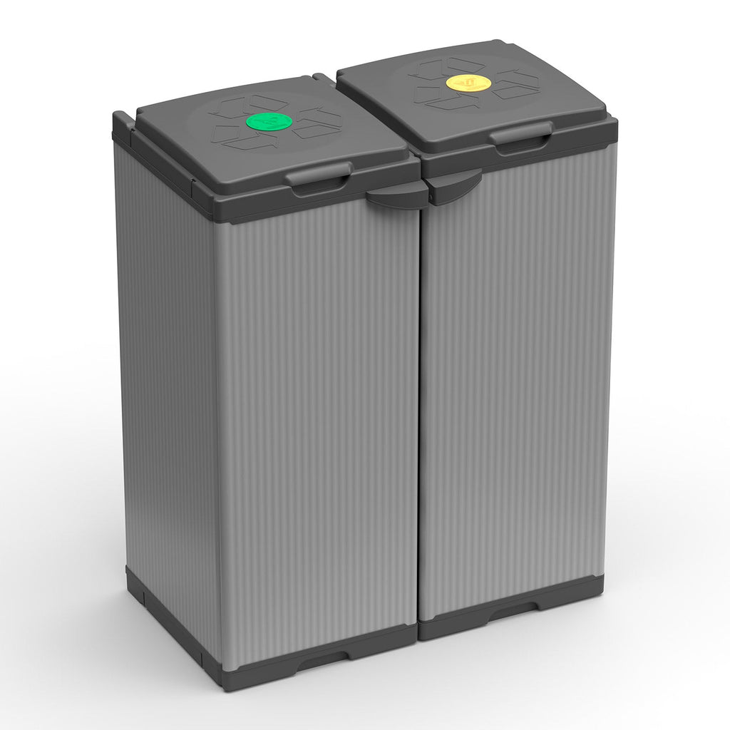 - Coperchi con ferma sacco, basi, montanti e maniglie in resina di PP di seconda vita.