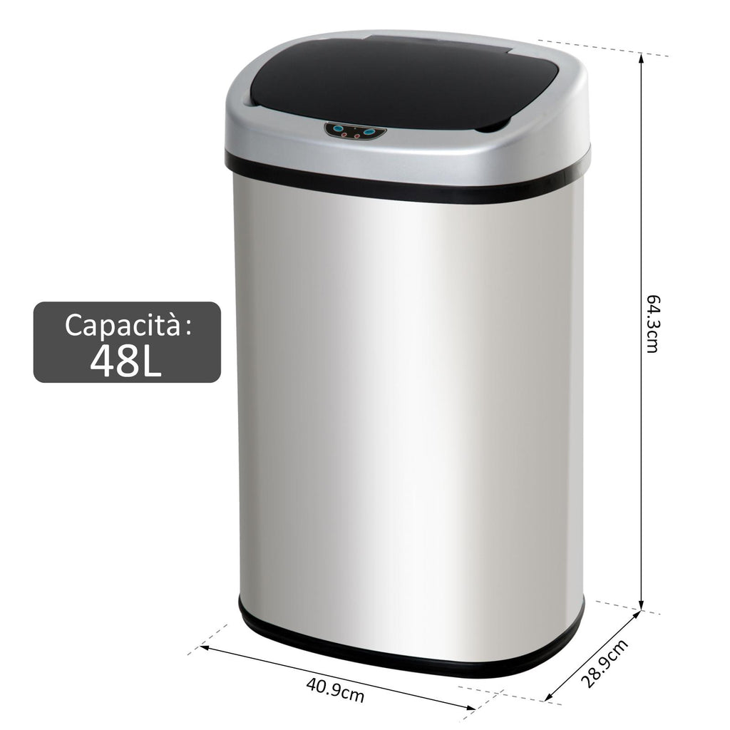 Pattumiera ad Apertura Automatica in Acciaio Inox con Sensore 48 Litri