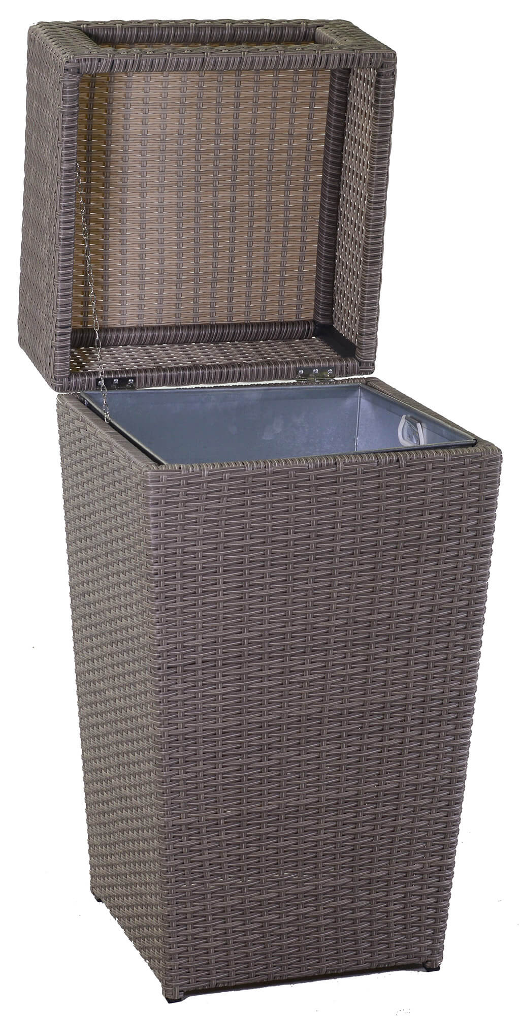 Pattumiera da Esterno Quadrata in Polyrattan 45,5x45,5x89 cm Atlanta Grigio