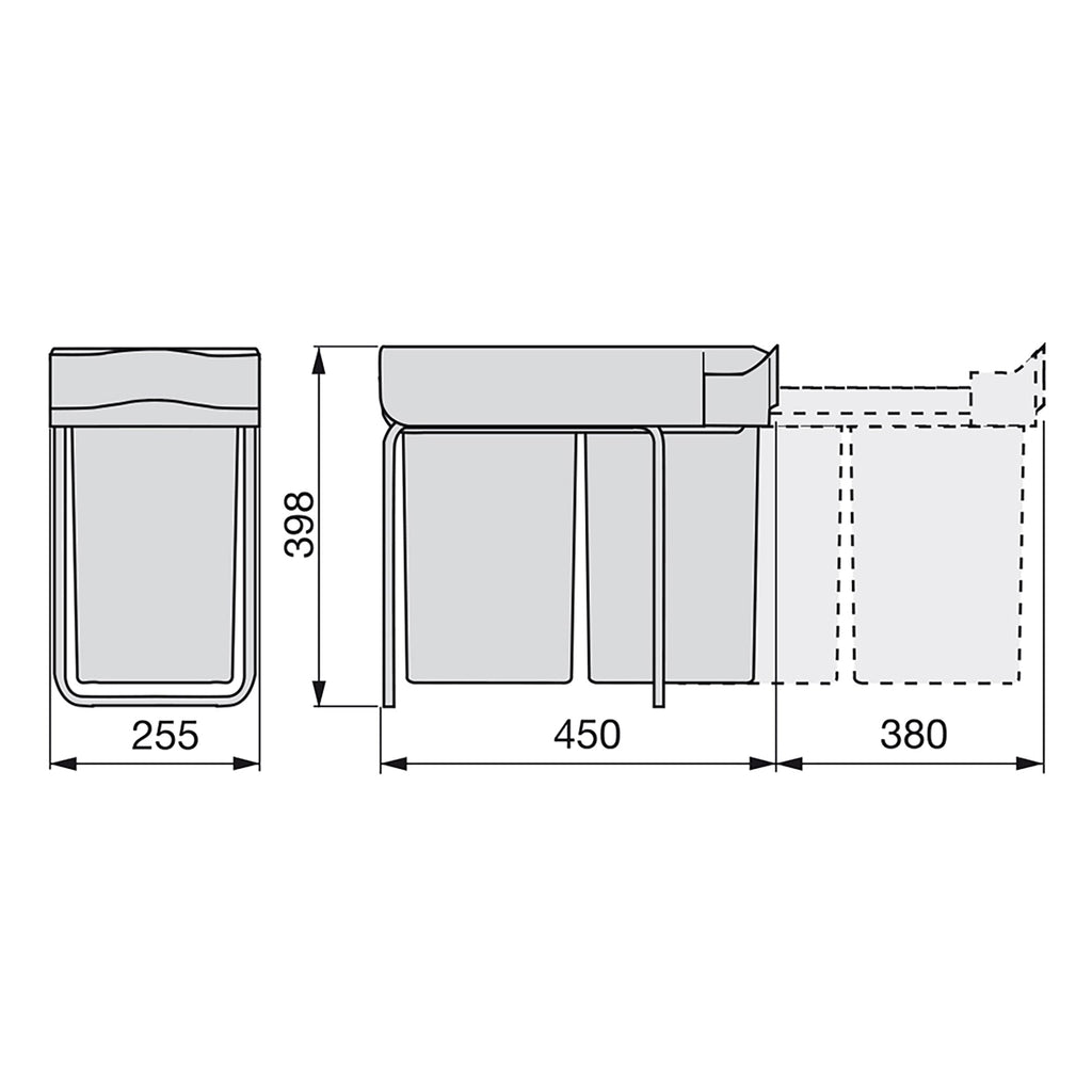 Pattumiera Differenziata 2 Contenitori per Mobili Cucina 14L Estrazione Manuale Emuca Grigia
