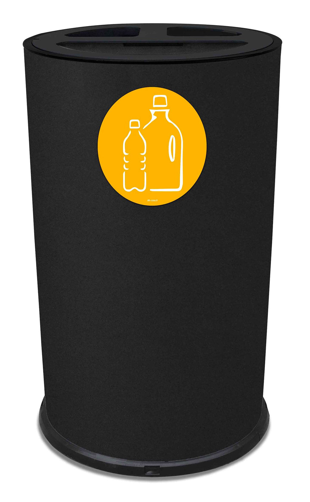 Elegante e funzionale contenitore per raccolta rifiuti, cover a tre scomparti, realizzato totalmente in acciaio verniciato nero con vernici termoindurenti. Inserimento sacchetto tramite pratici reggisacchi interno con svuotamento dall'alto. Kit pittogrammi magnetici incluso, facili da apporre e rimuovere per permettere una corretta pulizia del prodotto. Fondo in metallo con bordino salva pavimento