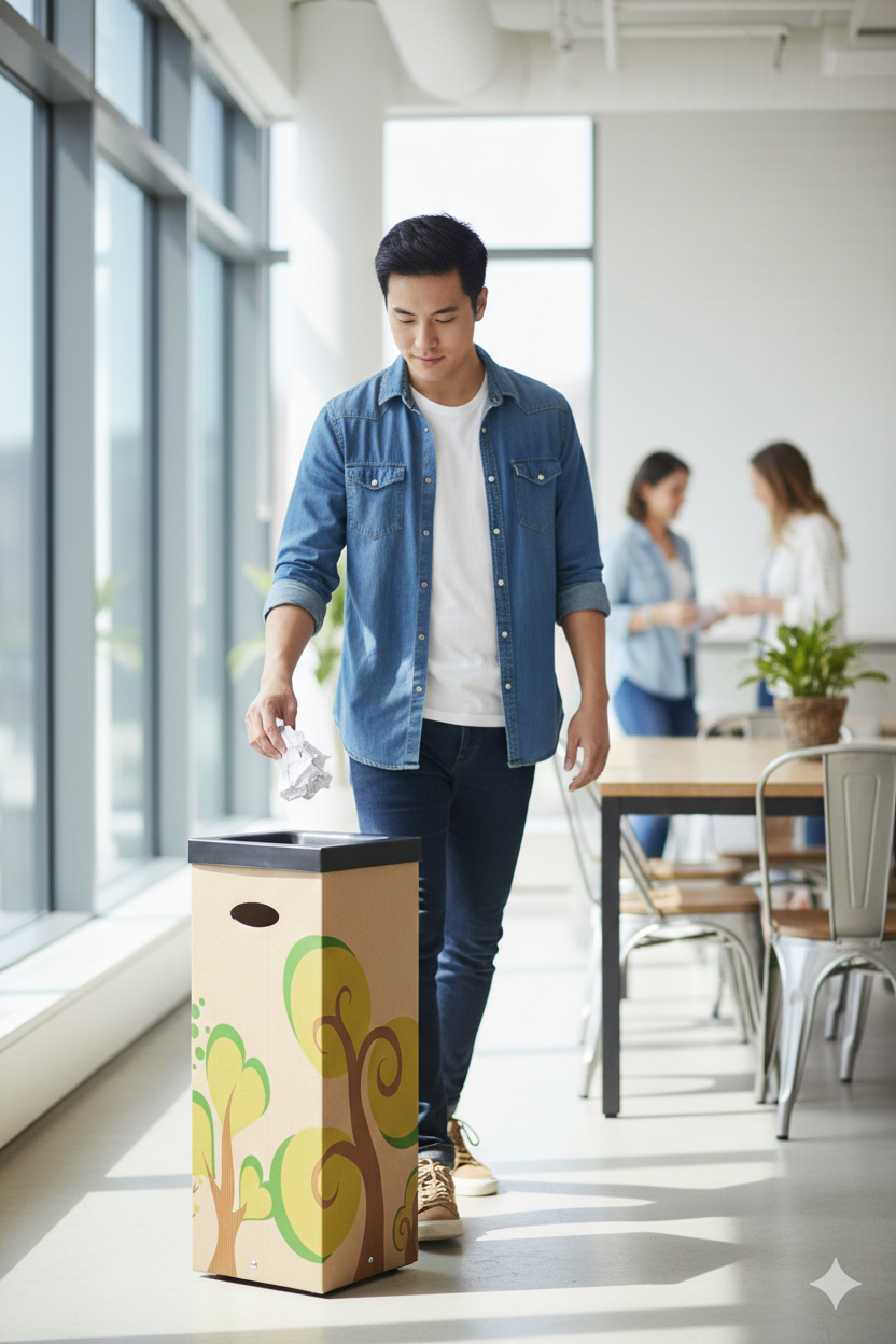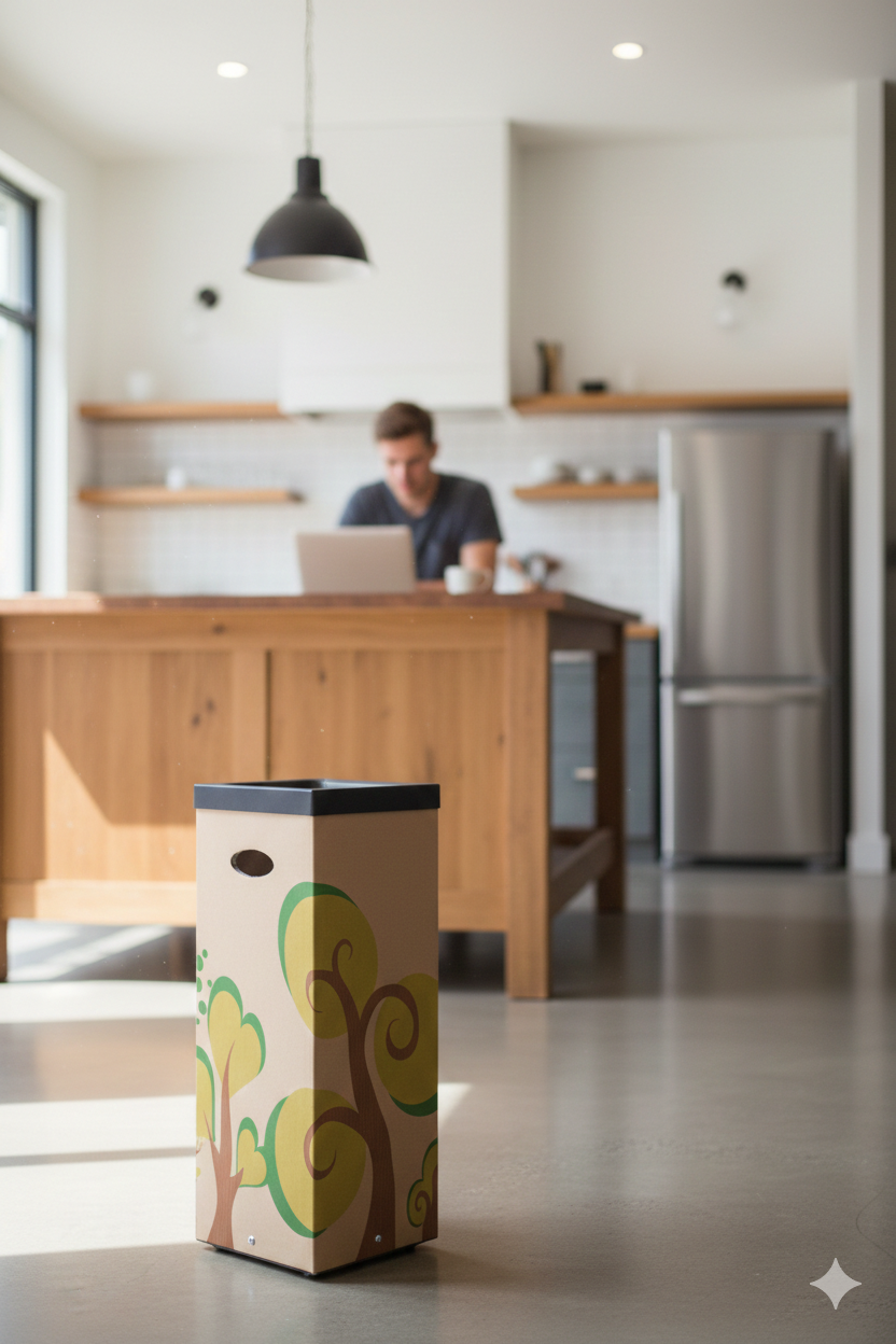 Pattumiera Per Raccolta Rifiuti 28x28xh70 cm in Cartone Con Stampa Grafica G2 Beige
