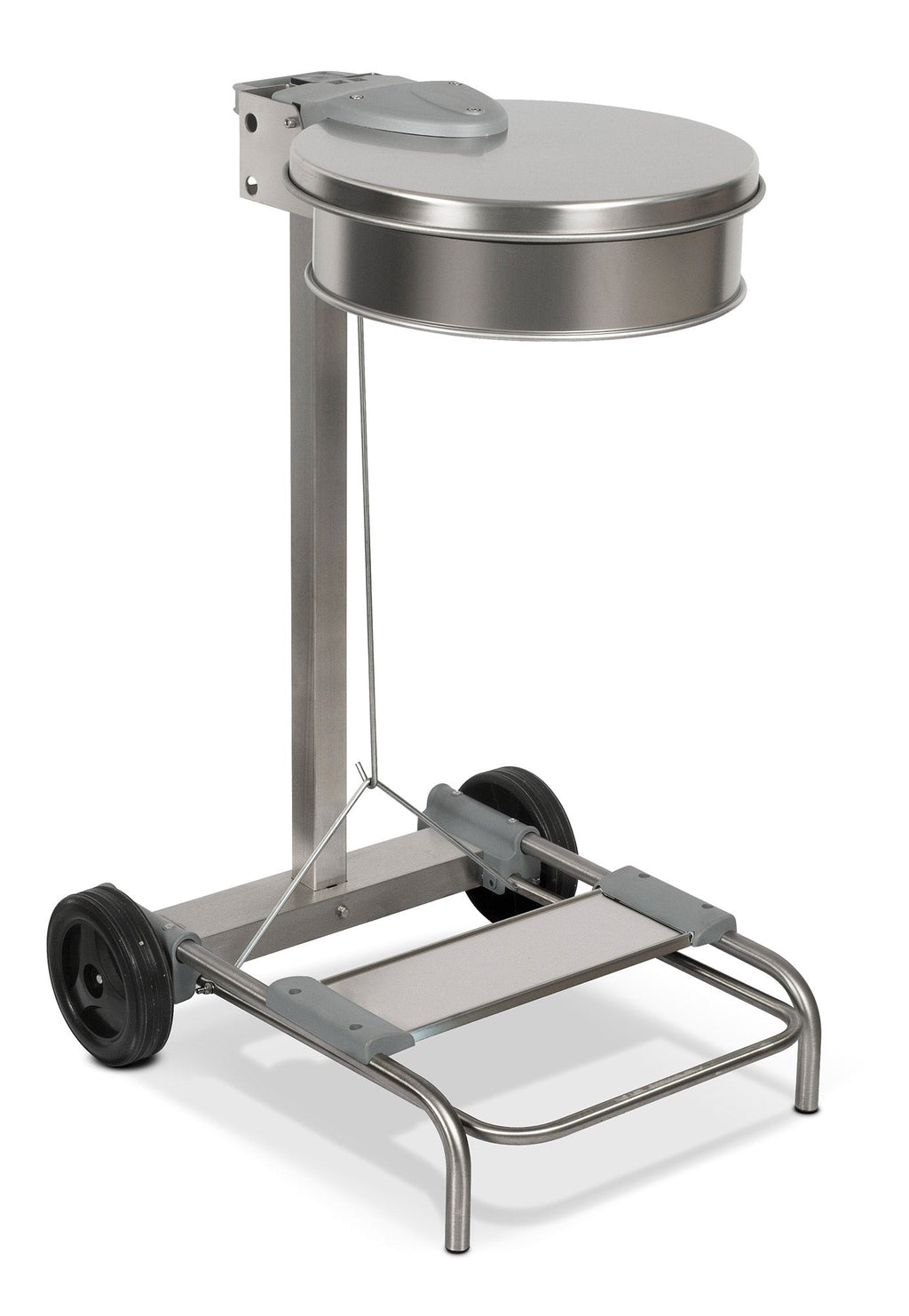Elegante e funzionale reggisacco per raccolta rifiuti da interno, realizzato totalmente in acciaio inox satinato. Coperchio con apertura a pedale. Inserimento sacchetto tramite elastico ferma sacco. Maniglia posteriore in tecnopolimero per agevolare lo spostamento. Due ruote fisse posteriori. Articolo venduto smontato, dotato di istruzioni