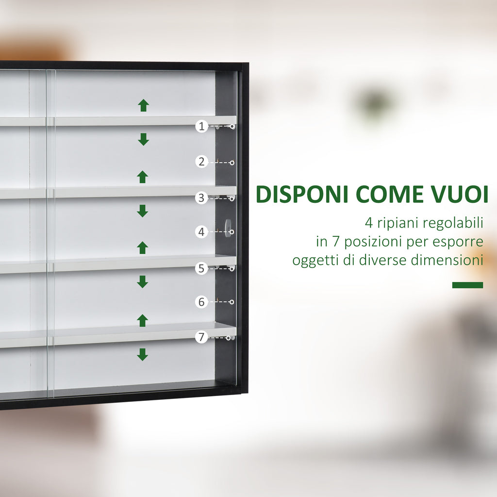 - MONTAGGIO A MURO: Pratica e salvaspazio, la vetrinetta da esposizione può essere appesa al muro.