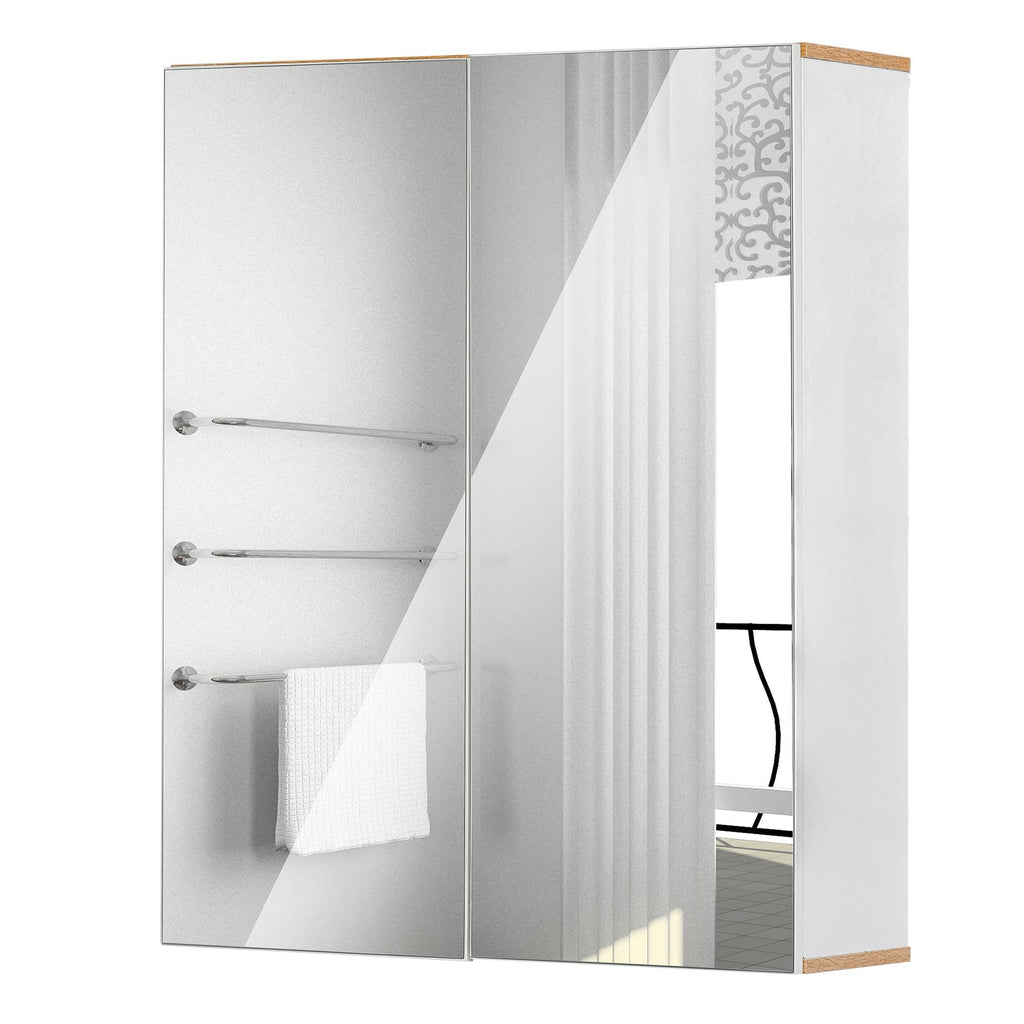 Pensile da Bagno 2 Ante Specchio 60x20,5x75 cm in Legno Bianco e Rovere