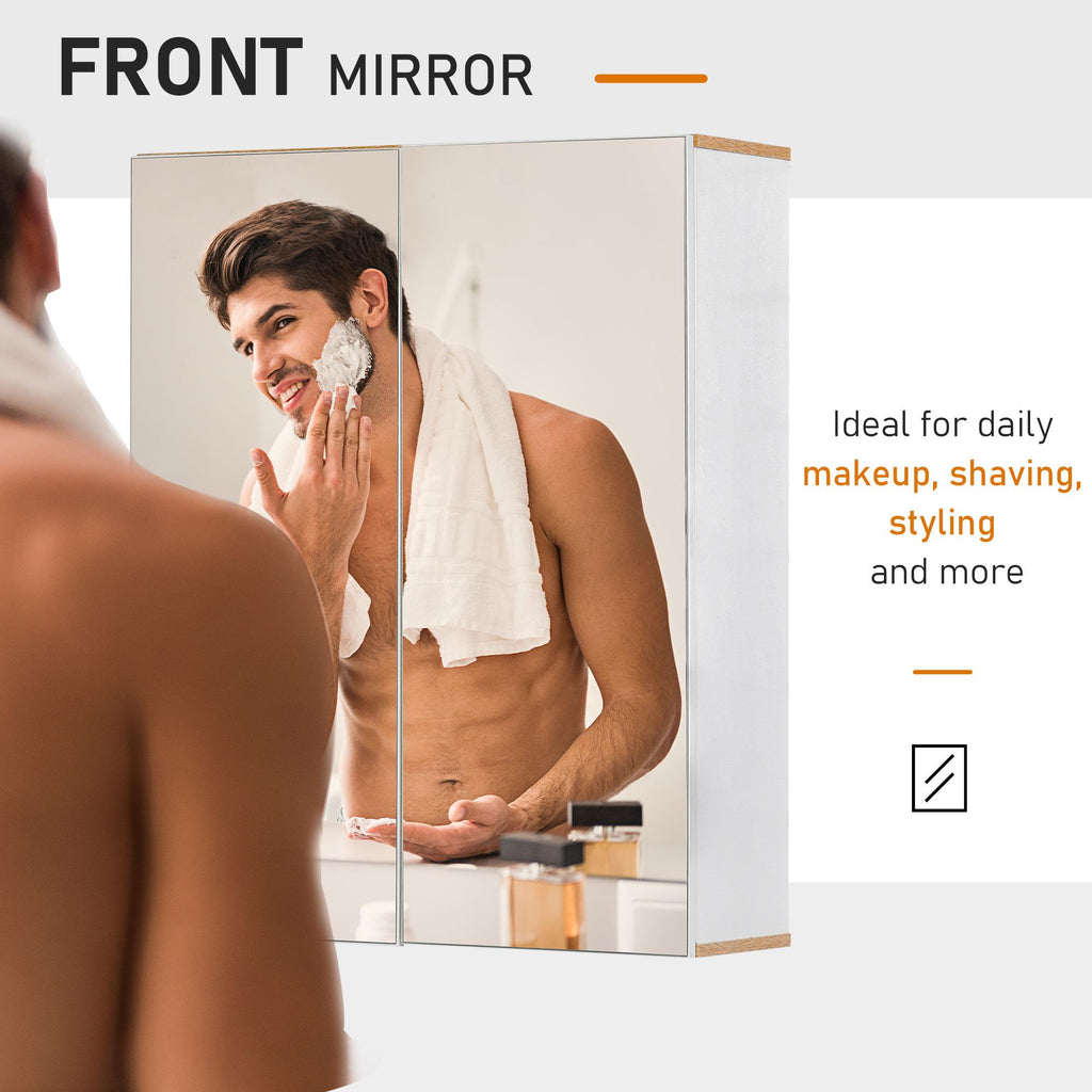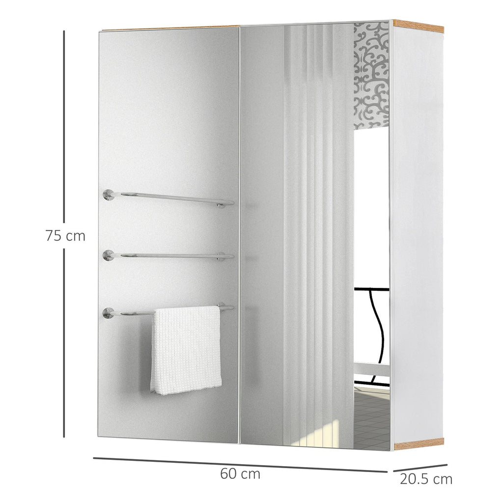 Questo specchio contenitore da bagno è l'accessorio indispensabile in ambienti di piccole dimensioni. La struttura è costruita in legno e ha due antine specchiate, ideali per truccarsi o per farsi la barba. All'interno ci sono 2 ripiani regolabili in altezza su cui puoi sistemare tutti i tuoi accessori, e averli sempre a portata di mano.