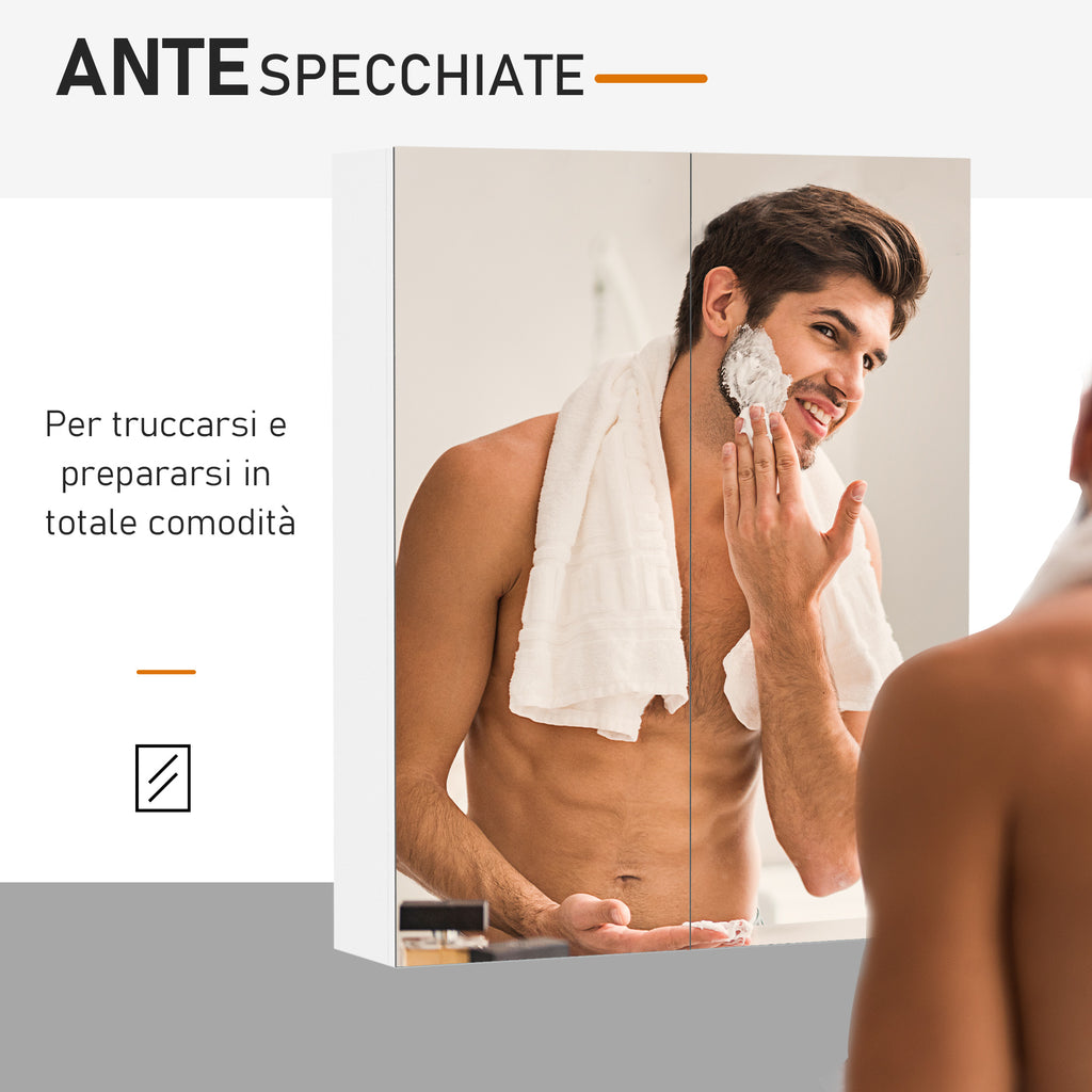 Pensile da Bagno 2 Ante Specchio in MDF 60x15x75 cm Morning Bianco