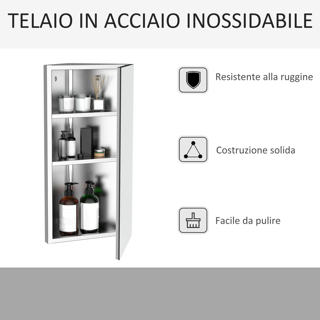 Stai cercando una soluzione salva spazio per il tuo salotto? Questo armadietto da bagno angolare è perfetto per te! Senza cornici, cerniere o infissi a vista, ti offre una superficie 100% riflettente, ideale per valorizzare anche gli spazi più ristretti. Al suo interno hai a disposizione 3 comodi ripiani in acciaio inox per riporre tutti i tuoi prodotti da bagno, come lo spazzolino da denti, il rasoio, il dopobarba e il profumo. Riorganizza il tuo bagno con questo mobiletto pratico e funzionale!
