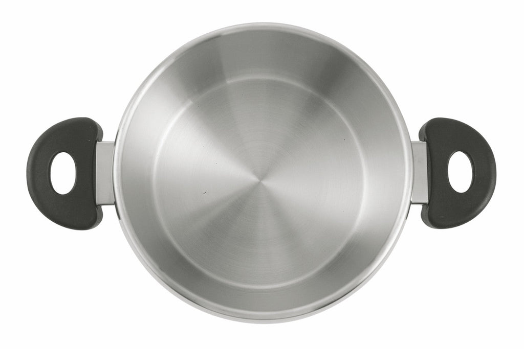 Adatta a tutti i piani cottura anche a induzione, è dotata di triplo strato acciaio-alluminio-acciaio che permetterà una propagazione uniforme del calore su tutta la superficie.