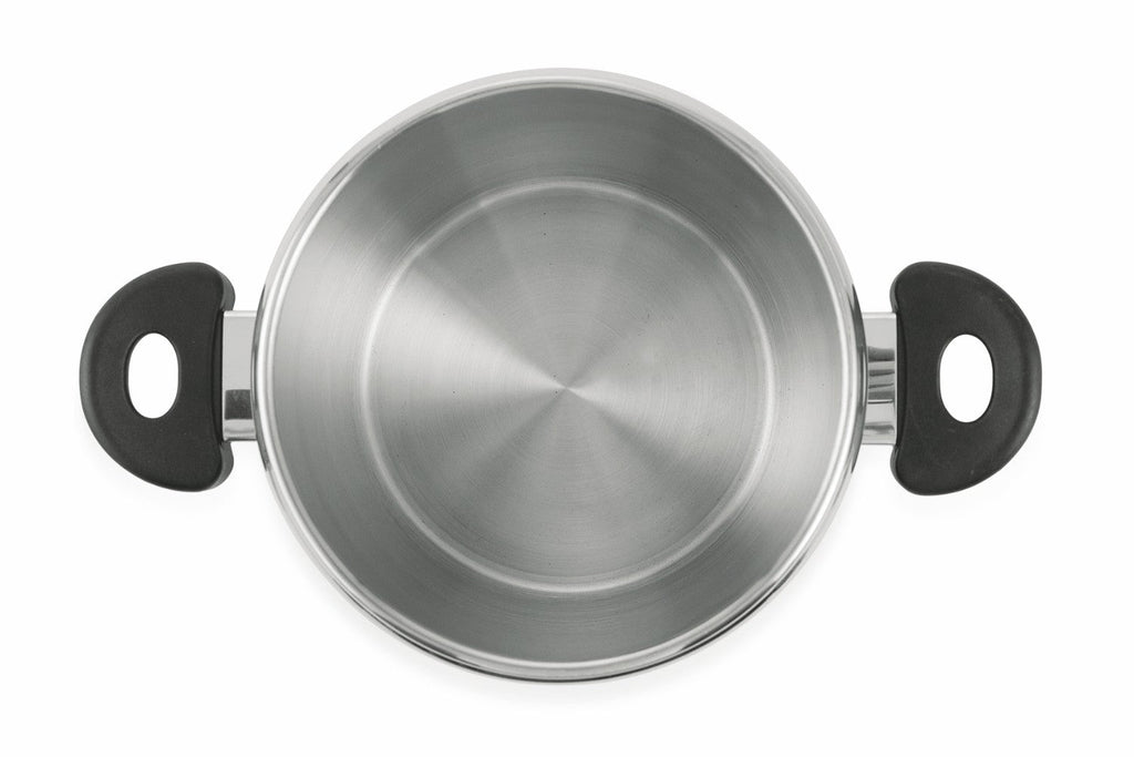 Adatta a tutti i piani cottura anche a induzione, è dotata di triplo strato acciaio-alluminio-acciaio che permetterà una propagazione uniforme del calore su tutta la superficie.